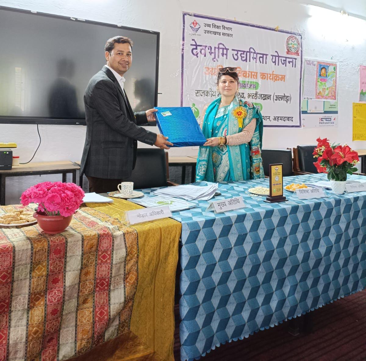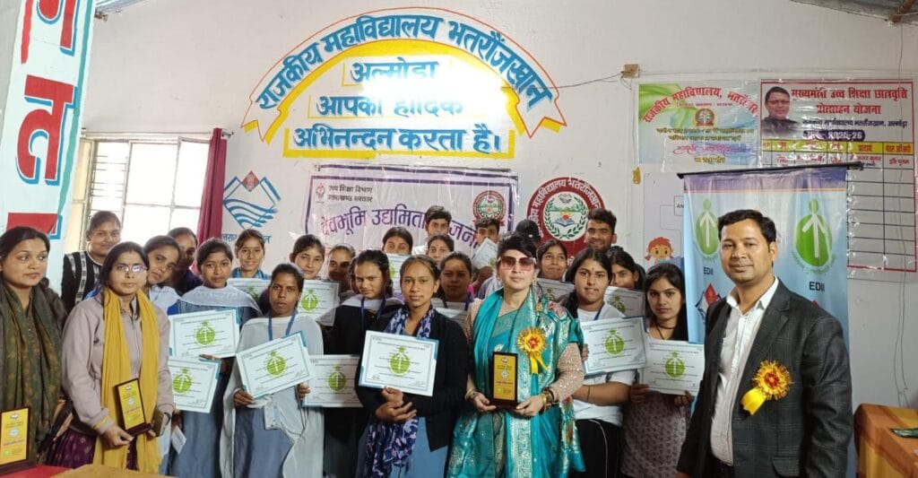 भत्रोजखान/ अल्मोड़ा :::- राजकीय महाविद्यालय भत्रोजखान में देवभूमि उद्यमिता योजना के तीसरे संस्करण का सफल आयोजन मंगलवार को प्राचार्य प्रो. पुष्पेश कुमार पांडे के मार्गदर्शन एवं नोडल अधिकारी डॉ. केतकी तारा कुमैय्या के नेतृत्व में किया गया। कार्यक्रम का शुभारंभ मुख्य अतिथि द्वारा दीप प्रज्जवलन के साथ किया गया।