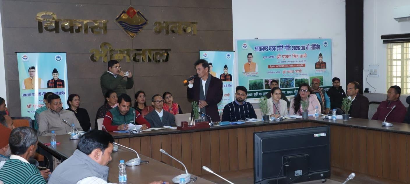 भीमताल:::- उत्तराखण्ड महक क्रान्ति नीति 2026-36 लॉन्चिंग कार्यक्रम का आयोजन किया गया। महक क्रांति नीति की लॉन्चिग सगंध पौधा केन्द्र सेलाकुई देहरादून में मुख्यमंत्री श्री पुष्कर सिंह धामी द्वारा की गई। भीमताल विकास भवन सभागार में वर्चुअल सीधा प्रसारण के माध्यम से जुड़े भीमताल के किसान ब्लॉक प्रमुख डॉo हरीश सिंह बिष्ट ने अध्यक्षता की। संस्थान के निदेशक नृपेन्द्र चौहान द्वारा महक क्रांति नीति के बारे के जानकारी दी गयी। ब्लॉक प्रमुख बिष्ट ने अपने संबोधन में कहा हमारे पहाड़ में कृषि बागवानी की अपार संभावना है। सुंगध पौध से भी किसान अपनी आय दुगनी कर सकते है पहाड़ में जंगलों में भी औषधी के पौध है जो कई निवारणों के लिए लाभदायक हैं। कृषि एवं बागवानी उत्पादन के साथ ही हमें अपने उत्पादित फसलों का मार्केटिंग की ओर विशेष ध्यान देने की आवश्यकता है हम अपने उत्पादों को किस प्रकार बाजार तक पहुंचा कर बेच सकते है। भीमताल के अधिकांश गांव कृषि बागवानी पर निर्भर है। राज्य सरकार की कृषि बागवानी जनकल्याण कारी योजनाओं से कुछ प्रतिशत तक पलायन रुका है इससे रिवर्स पलायन हुआ है।सगन्ध पौधा केन्द्र (कैप के वैज्ञानिक डा. ललित अग्रवाल के द्वारा सगंध खेती के बारे में कृषकों को विस्तार से जानकारी दी गई। प्रमुख ने कहा कि महक क्रांति पॉलिसी की लांचिंग से नैनीताल के सगंध कृषक लाभान्वित होंगे क्योकि यहां पर जंगली जानवरों के कारण लोगों के द्वारा खेती छोडी जा रही है। सगंध खेती जंगली जानवरों से सुरक्षित है। क्रार्यक्रम में उपस्थित जिला विकास अधिकारी श्री गोपाल गिरी ने कृषको से महक क्रान्ति नीति में दिए जाने वाले लाभों द्वारा नैनीताल में सिनामोन की खेती बढ़ावा देने का आव्हाहन किया। हर्षित गर्ग खण्ड विकास अधिकारी द्वारा कैप के माध्यम से विकास खंड भीमताल में चल रही योजनाओ का व्योरा प्रस्तुत किया गया, कमल जोशी भाजपा मंडल अध्यक्ष द्वारा भी सरकार की योजनाओ को धरालत पर सुचारु रूप से चलने हेतु कृषको एवं विभागीय अधिकारियों से मिलकर कार्य करने के लिए आव्हाहन किया गया। कार्यक्रम में कृषि अधिकारी श्रीमती ऋतू टम्टा मुख्य उद्यान अधिकारी प्रेमा राणा ग्राम प्रधान संगठन अध्यक्ष लक्ष्मण सिंह गंगोला, दिनेश सांगुडी,कीर्ति बल्लभ जोशी फील्ड सहायक कैप सेलाकुई वीरेंदर सिंह बिष्ट फील्ड सहायक कैप सेलाकुई के साथ साथ बड़ी संख्या में भीमताल एवं ओखल कांडा सगंध कृषक उपस्थित रहे।