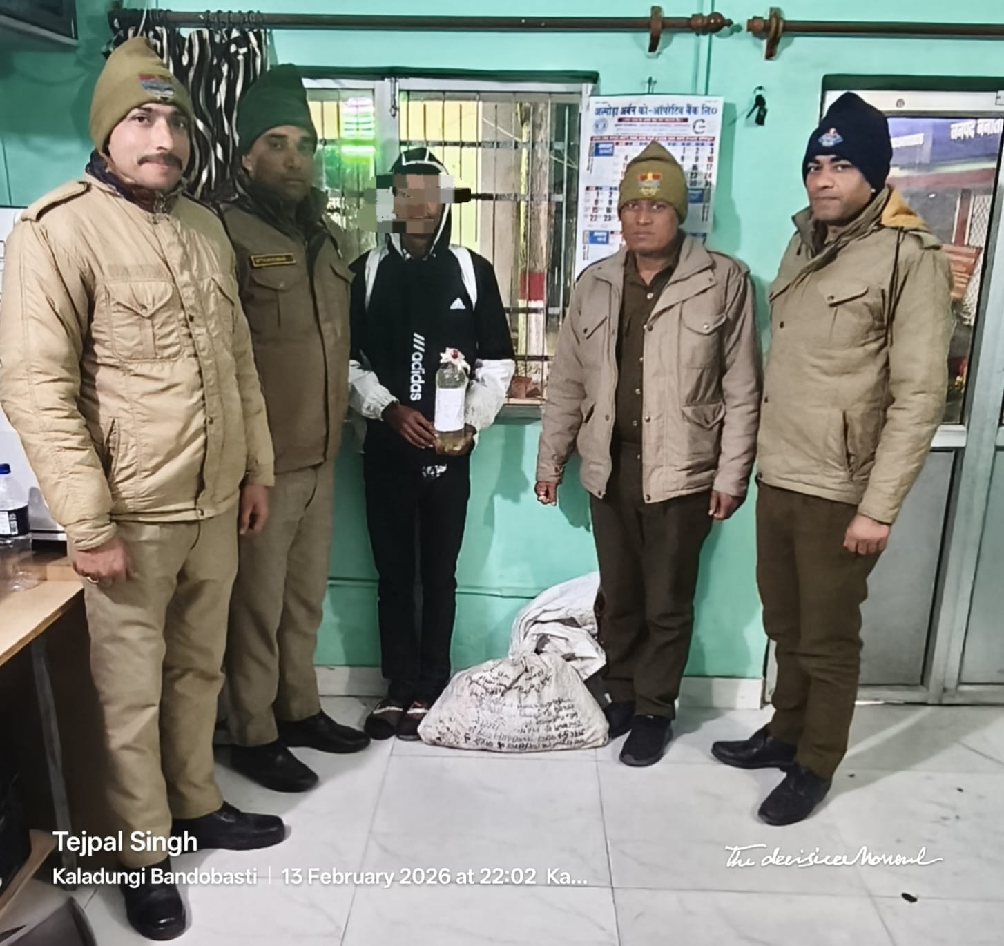 पुलिस अधीक्षक हल्द्वानी मनोज कुमार कत्याल के मार्गदर्शन क्षेत्राधिकारी रामनगर सुमित पांडे के पर्यवेक्षण तथा प्रभारी निरीक्षक कालाढूंगी अरुण कुमार सैनी के नेतृत्व में पुलिस टीम द्वारा चैकिंग के दौरान निहाल नदी विदरामपुर चकलुवा क्षेत्र से एक व्यक्तिदे वेन्द्र कुमार पुत्र स्व. मोहन राम निवासी शीशमपुर विदरामपुर चकलुवा कोतवाली उम्र 27 वर्ष को 57 पाउच अवैध कच्ची शराब के साथ गिरफ्तार किया गया।