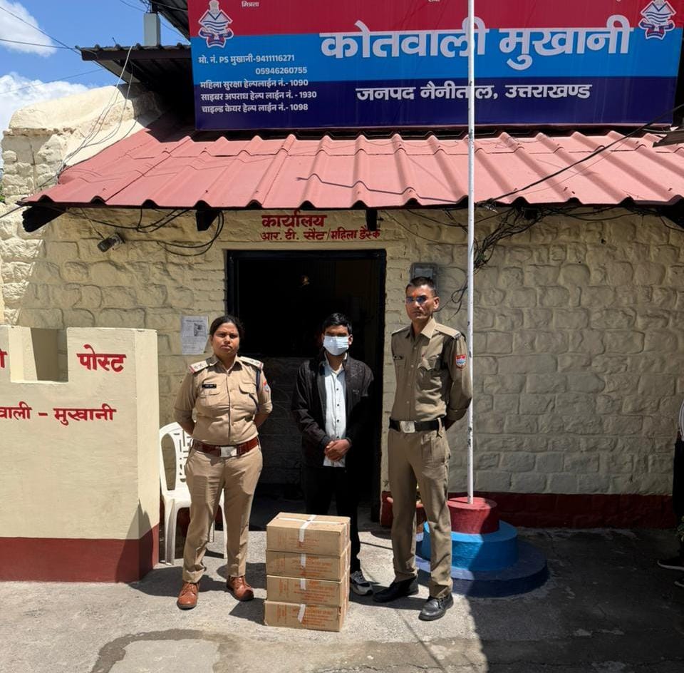 मुखानी थाना पुलिस ने चेकिंग के दौरान गैस गोदाम रोड स्थित सिटी मार्ट के पास एक युवक को स्कूटी में अवैध शराब ले जाते हुए पकड़ा। अभियुक्त हरीश सिंह (24 वर्ष) निवासी रामपुर रोड हल्द्वानी के कब्जे से चार पेटी (192 टेट्रा पैक) किन्नू मसालेदार देशी शराब बरामद हुई। इस मामले में आबकारी अधिनियम के तहत मुकदमा दर्ज किया गया है।