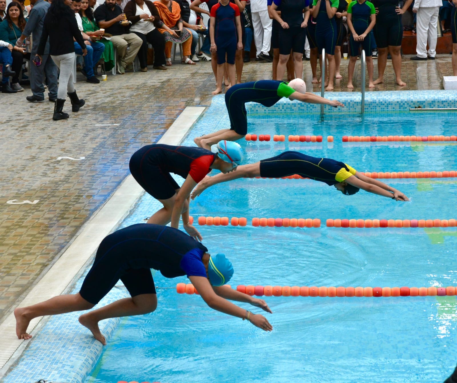 नैनीताल:::- ऑल सेंट्स कॉलेज में 17वाँ वार्षिक एक्वेटिक मीट बड़े उत्साह के साथ शुक्रवार को सम्पन्न हुआ। छात्राओं ने फ्री स्टाइल, बैक स्ट्रोक, बटरफ्लाई स्ट्रोक और ब्रैस्ट स्ट्रोक जैसी प्रतियोगिताओं में शानदार प्रदर्शन कर अपनी प्रतिभा का परिचय दिया। जिसमें कक्षा 1 और 2 के नन्हे-मुन्ने छात्रों ने लाइफ जैकेट रेस में भाग लेकर कार्यक्रम में विशेष आकर्षण जोड़ा।