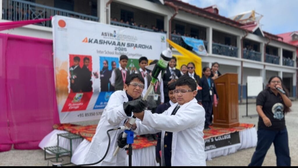 नैनीताल:::- शिक्षा में नवाचार और विज्ञान के प्रति रुचि को बढ़ावा देने के उद्देश्य से एस्ट्रोपाथशाला एस्ट्रोवर्स एक्सपीरियंस प्रा. लि. का शैक्षिक प्रकोष्ठ ने नैनीताल ज़ोन में इंटर-स्कूल रॉकेट्री प्रतियोगिता अकाशयान स्पर्धा 2025 का सफल आयोजन किया। यह प्रतियोगिता सचमुच एक रॉकेट युद्ध साबित हुई, जहाँ विभिन्न विद्यालयों के छात्रों ने अपनी रचनात्मकता, वैज्ञानिक दृष्टिकोण और नवाचार का शानदार प्रदर्शन किया।