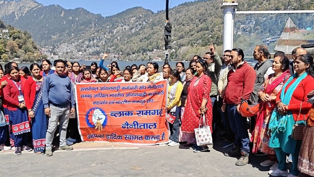 विभिन्न मांगो को लेकर आंगनबाड़ी कर्मचारी संघ से जुड़ी जिले भर की कार्यकर्त्तए तल्लीताल गांधी चौक में इकट्ठा हुई। जहां पर जोरदार नारेबाजी की गई। रैली में नैनीताल जिले के सभी ब्लॉकों से आंगनबाड़ी कार्यकत्रियां पहुंची हुई थी।