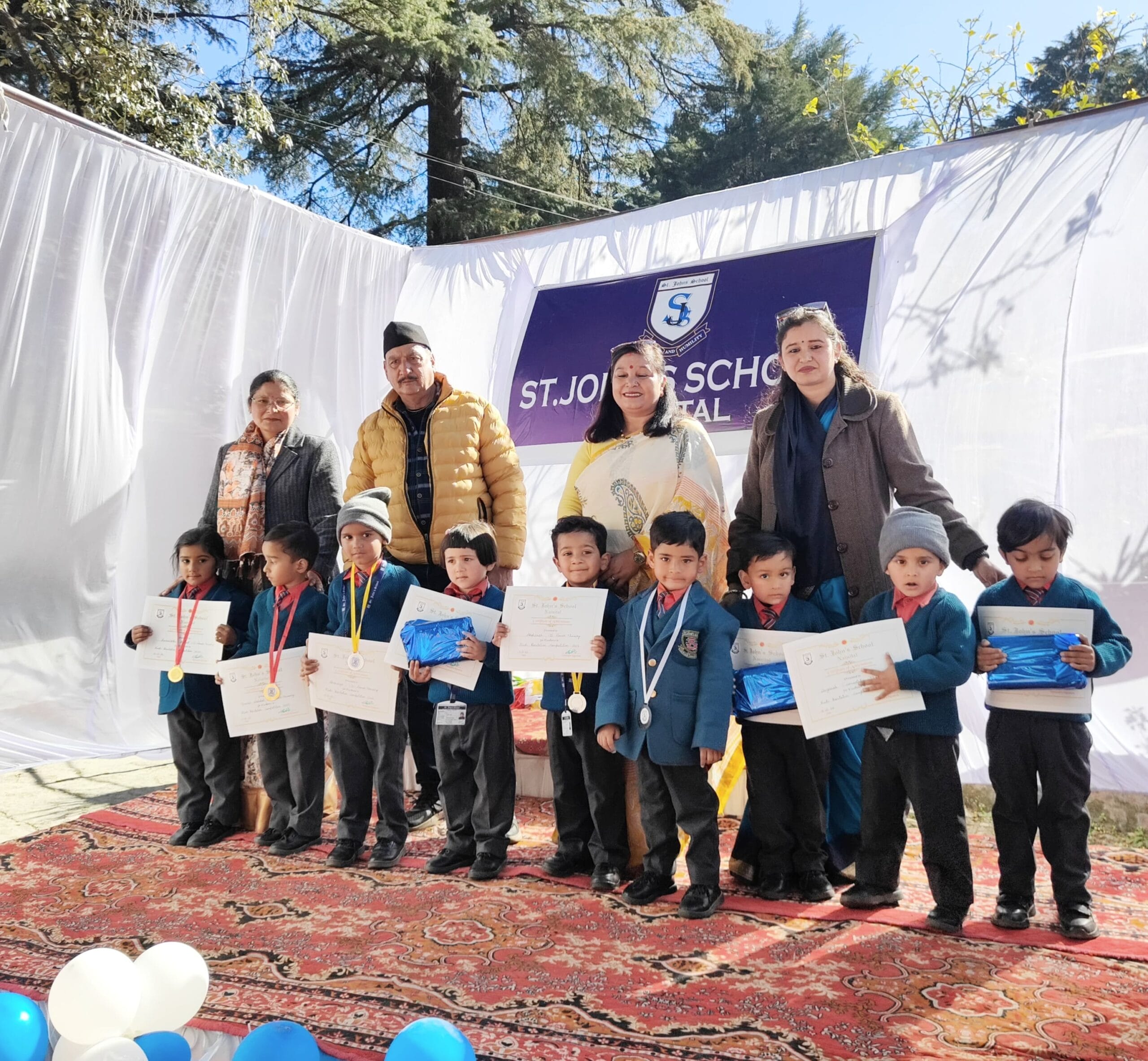 नैनीताल :::- नगर के प्रतिष्ठित स्कूल सेंट जॉन्स स्कूल में सोमवार को वार्षिक पारितोषिक पुरस्कार वितरण समारोह का आयोजन किया गया। जिसमें विद्यालय में वर्ष भर आयोजित खेल, कला एवं शैक्षणिक गतिविधियों के आधार पर छात्र छात्राओं को मुख्य अतिथि कविता गंगोला समाजसेवी एवं अध्यक्ष महिला मोर्चा भाजपा, विशिष्ट अतिथि मनोज साह अध्यक्ष राम सेवक सभा तथा प्रधानाचार्या विनीता रावत द्वारा पुरस्कार वितरण किया गया। प्रतियोगिताओं में हिंदी काव्य पाठ, अंग्रेजी काव्य पाठ,कला, हिन्दी लेखन, अंग्रेजी लेखन,वार्षिक खेल प्रतियोगिता के पुरस्कार प्राप्त कर छात्र छात्राओं के चेहरे खुशी से खिल उठे ।इस अवसर पर उप प्रधानाचार्य पूनम बिष्ट, ज्योति त्रिपाठी,लता फर्त्याल रावत, किरन मेर,आशा जोशी,मोनिका वर्मा, अनीता बोरा,रुचि साह,पल्लवी जोशी, शाहीन,किरण रतूड़ी,पूजा आर्या,विक्रम सिंह रावत, हर्षिता आर्या,तुलसी मेहरा,पूनम बिष्ट, रेनू बिष्ट एवं समस्त कार्यालय स्टाफ उपस्थित रहे।
