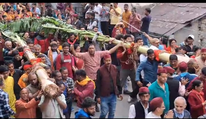 नैनीताल :::- श्री राम सेवक सभा द्वारा आयोजित नंदा देवी महोत्सव में सोमवार को कदली वृक्ष रोखड थापला गांव से वैष्णव देवी मंदिर पहुंचा। कदली वृक्ष की सूखाताल व चीन बाबा मंदिर में पूजा अर्चना हुई जिसके बाद वैष्णव देवी मंदिर में कदली पूजन के बाद नगर भ्रमण हुआ। नगर भ्रमण के बाद कदली वृक्ष नयना देवी मंदिर पहुंचा। कदली वृक्ष के साथ आगे सफेद तथा पीछे लाल झंडा जाता है । भ्रमण के दौरान विद्यालय सीआरएसटी इंटर कॉलेज ,नगरपालिका इंटर कॉलेज ,बालिका इंटर कॉलेज ,सेंट जॉन्स ,नैनी पब्लिक स्कूल ,सरस्वती विद्या मंदिर , बीएसएसवी,आरएसएसबी , ऊमा लवली ,जीजीआईसी ,सेंट स्टीफेंस, रामा मोंटरी समेत ही महिलाएं शामिल हुई। जिन्होंने नंदा की जय जय कार की तथा मां के भजन गए। आयुक्त दीपक रावत ने कहा की यूनेस्को की वर्ल्ड हेरिटेज साइट में इसे शामिल करने के पूरे प्रयास होंगे।