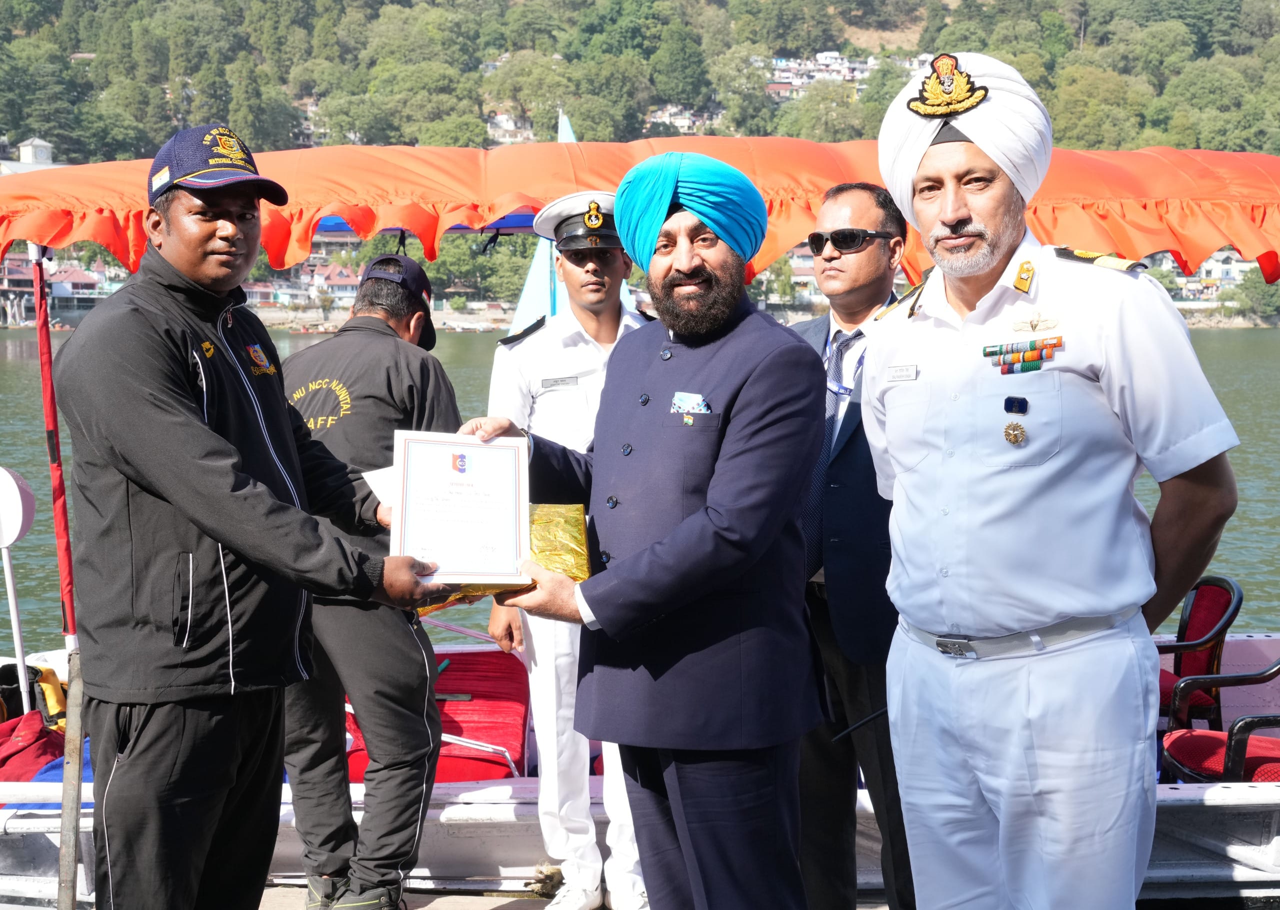 नैनीताल :::- राज्यपाल लेफ्टिनेंट जनरल गुरमीत सिंह (से नि) ने सोमवार को एनसीसी ग्रुप द्वारा नैनी झील में आयोजित ‘‘अवे ऑल बोट्स’’ प्रतियोगिता का फ्लैग ऑफ किया। उन्होंने इस प्रतियोगिता में विजेता नाविकों को पुरस्कृत किया। इस अवसर पर राज्यपाल ने कहा कि एनसीसी द्वारा इस कार्यक्रम के माध्यम से जिस प्रकार अपनी तैयारी, प्रशिक्षण और एक समन्वय का उदाहरण पेश किया है वह सराहनीय है। उन्होंने कहा कि ‘‘अवे ऑल बोट्स’’ राष्ट्रीय सुरक्षा और हमारी समुद्री ताकत के लिए जरूरी है और हमें हर वक्त चुनौती के लिए तैयार रहने के लिए प्रेरित करती है।