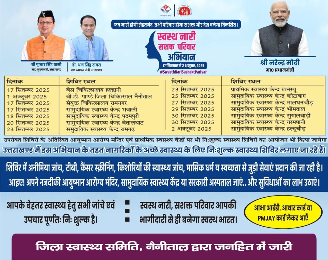 नैनीताल : स्वस्थ नारी सशक्त परिवार अभियान के तहत स्वास्थ्य शिविरों का आयोजन