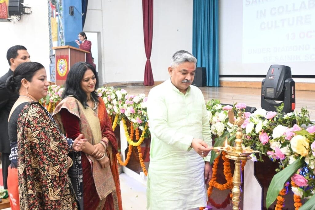 नैनीताल :::- सैनिक स्कूल घोड़ाखाल में हीरक जयंती समारोह के अवसर पर अंतर-विद्यालय लोकनृत्य प्रतियोगिता का भव्य आयोजन किया गया। कार्यक्रम का शुभारंभ मुख्य अतिथि डॉ. हरीश रौतेला और विशिष्ट अतिथि हेम आर्या द्वारा दीप प्रज्ज्वलन से हुआ। इस अवसर पर प्रथम महिला श्वेता डंगवाल भी उपस्थित रहीं।