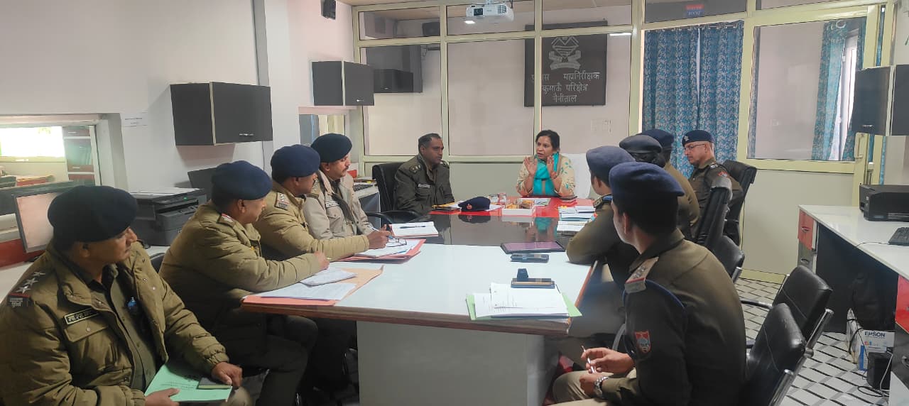 नैनीताल :::- आगामी क्रिसमस, नववर्ष आगमन तथा शीतकालीन अवकाश के दौरान नैनीताल में बढ़ने वाली पर्यटक गतिविधियों को दृष्टिगत रखते हुए आज पुलिस महानिरीक्षक, कुमायूँ परिक्षेत्र श्रीमती रिद्धिम अग्रवाल की अध्यक्षता में सोमवार को महत्वपूर्ण यातायात समन्वय गोष्ठी का आयोजन किया गया।