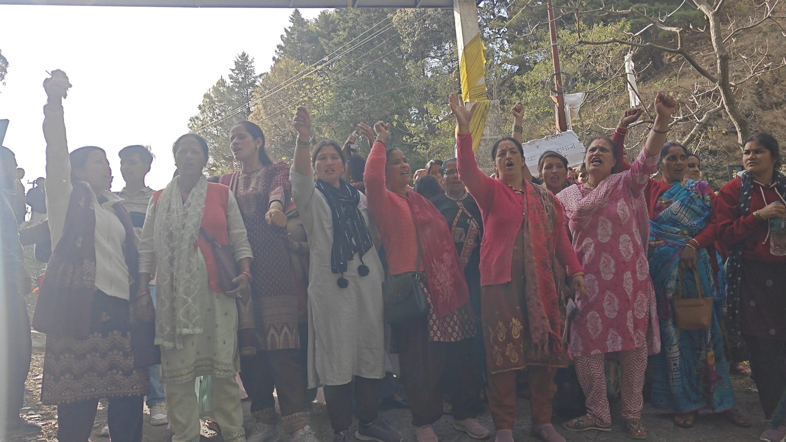 नैनीताल : मंगोली में शराब की दुकान का विरोध , महिलाओं का सड़क पर प्रदर्शन
