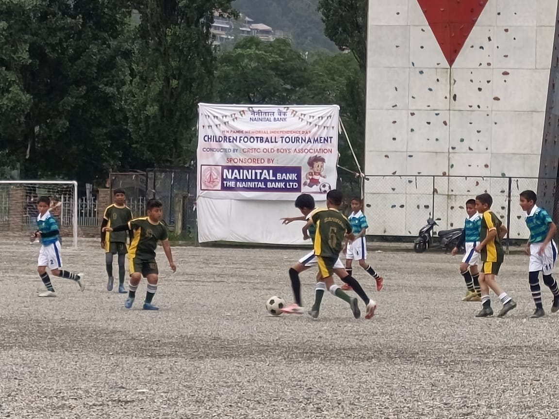 नैनीताल:::- सी आर एस टी ओल्ड बॉइज एसोसिएशन द्वारा आयोजित तथा दी नैनीताल बैंक लिमिटेड प्रायोजित एच.एन. पांडे मेमोरियल चिल्ड्रन इंडिपेंडेंस डे कप फुटबॉल टूर्नामेंट के दूसरे सेमीफाइनल में आज सनवाल स्कूल ने सेंट जोसेफ कॉलेज को 2-1 से पराजित कर फाइनल में प्रवेश किया।