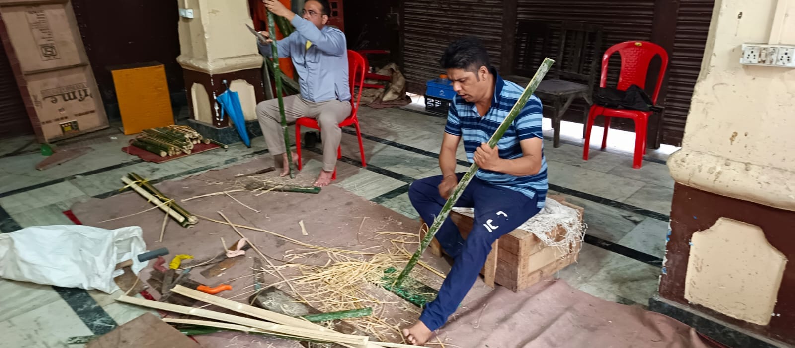 नैनीताल ::- श्री राम सेवक सभा में शनिवार को लोक पारंपरिक कलाकारों द्वारा मां नंदा सुनंदा की मूर्ति निर्माण के लिए बास को साफ करने का काम प्रारंभ हुआ जिसमें हरे बास की खपचिया बनाई जा रही है इस कार्य में कलाकारों ने बताया की बास की दो सेट की खपचिया बनाई जाति है जिससे केले के तने के साथ मां की मूर्ति का ढांचा तैयार किया जाता है । बास जिसे बंबूसा कहा जाता है इसके 24 वंश भारत में मिलते है । यह तेजी से बड़ने वाला पौधा है । इसका सांस्कृतिक एवं आर्थिक महत्व है । विश्व में 12 अरब अमेरिकी डॉलर का कारोबार बास से किया जाता है यह पूअर में टिंबर के नाम से प्रसिद्ध है । बास में सामूहिकता, लचीलापन,पुनर जनन का स्थाई रूपक है। यह सौभाग्य का प्रतीक है जापान में इसे बन सब्जियों का राजा कहा जाता है । बास सादगी तथा निरंतर विकास का प्रतीक है । लगभग 5000 वर्षों से प्रयुक्त होता है मानवीय सेवा में । हिंदू धर्म में इसे पवित्र माना गया है । शादी ,मुंडन में इसकी पूजा होती है।इसको जलाना वर्जित माना गया है जल में घुलन शील है । बरसो की परंपरा में बास मां नंदा सुनंदा की मूर्ति निर्माण में प्रयुक्त होता आ रहा है । हीरा सिंह, हरीश पंत ,अमर साह , गोविंद , गोधन बताते है की क्रम से 25, 40 ,25 , 30 ,35 वर्ष से बास लाने तथा छेलना का काम करते है जिसके लचीले होने पर नाप अनुसार ख पचिया बनाई जाती है जो मूर्ति का आधार है यही परंपरा की शुरुआत करते है और प्रकृति प्रेम के प्रति हमे सचेत करते है