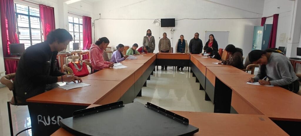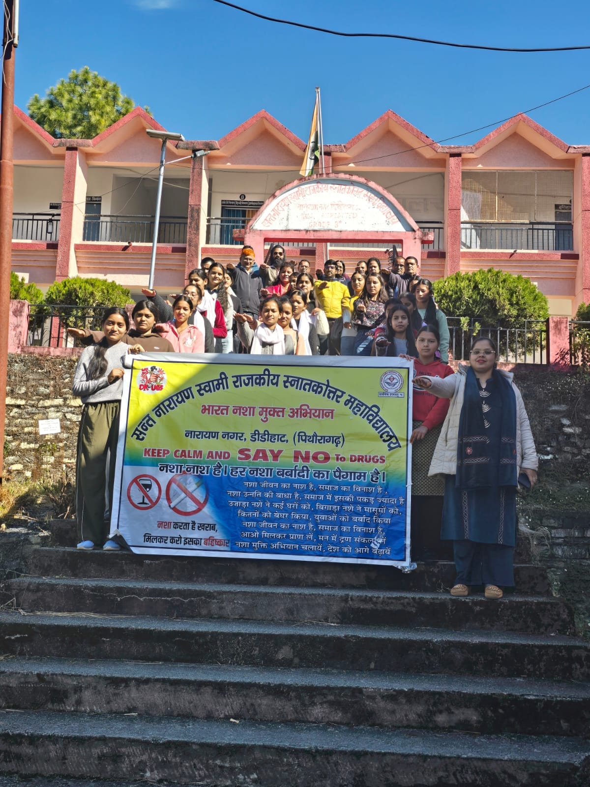 पिथौरागढ़ :::- संत नारायण स्वामी राजकीय स्नातकोत्तर महाविद्यालय, नारायण नगर में भारत नशा मुक्ति अभियान की पाँचवीं वर्षगांठ पर मंगलवार को शपथ ग्रहण कार्यक्रम एवं क्विज़ प्रतियोगिता का आयोजन उत्साहपूर्वक संपन्न हुआ। कार्यक्रम की अध्यक्षता प्राचार्य प्रोफेसर प्रेमलता कुमारी ने की।